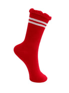 Trendy socks with sporty stripes and a feminine, wavy edge at the top. The soft and elastic quality ensures a comfortable fit, while the ribbed details give a cool and relaxed look.