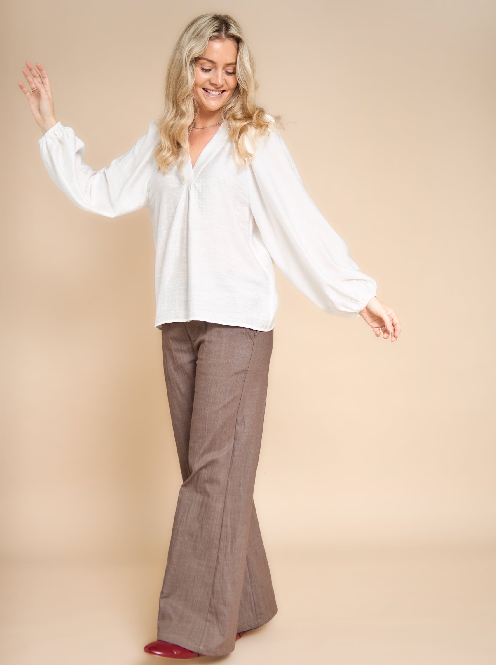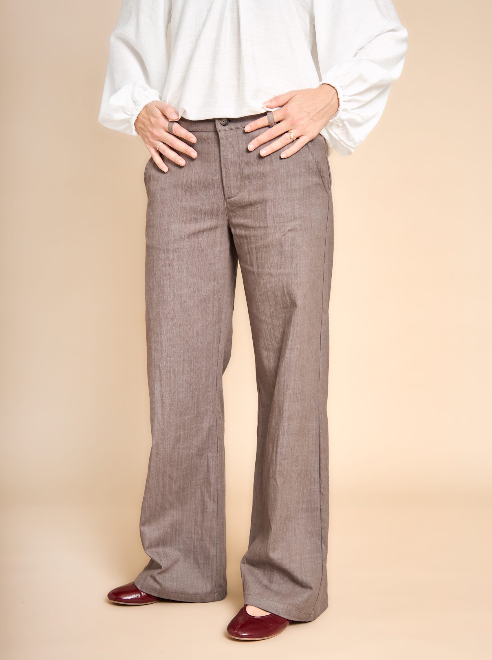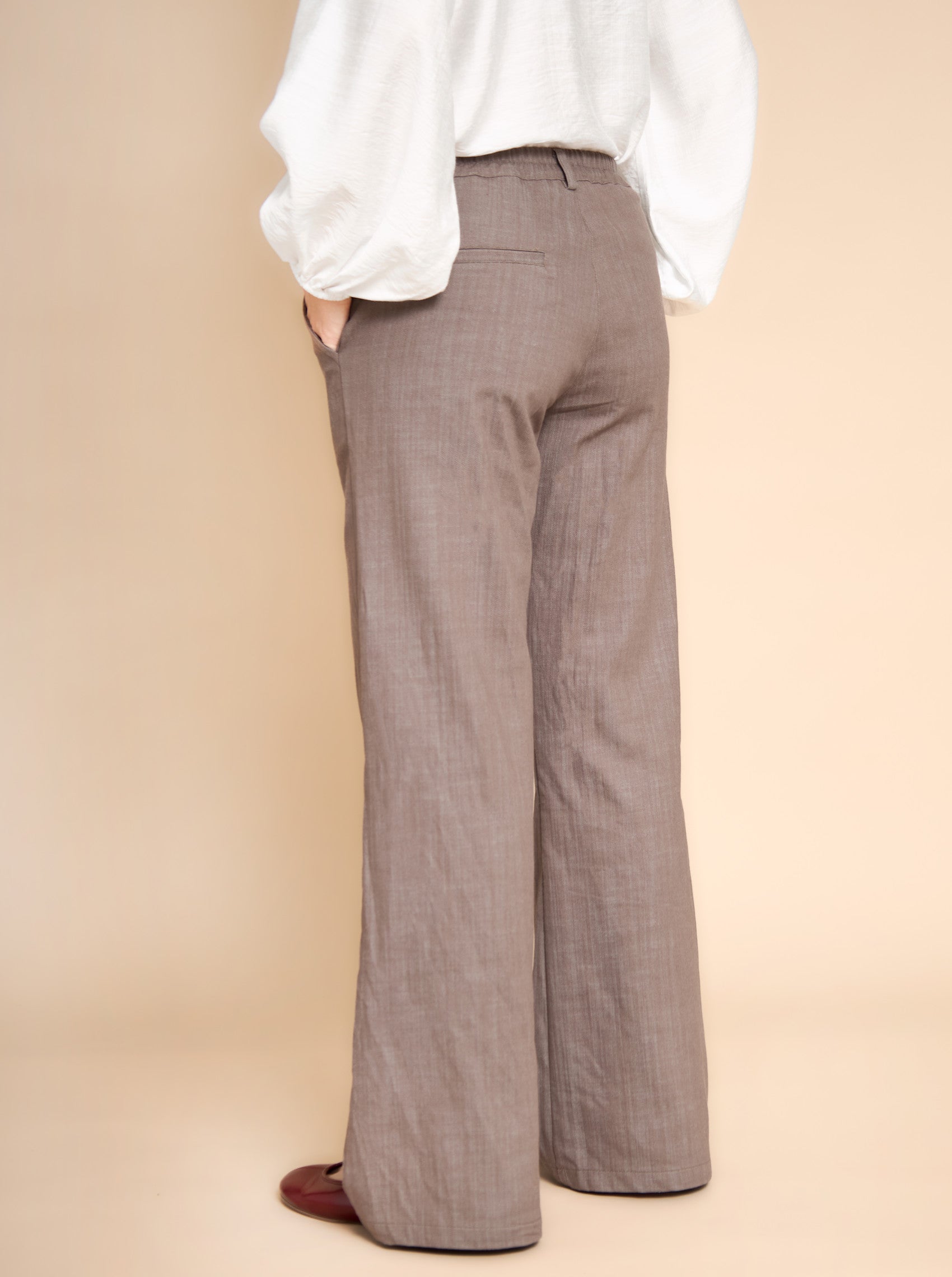 Our Box pants are our best-selling pants, and we can understand that. These pants are an absolute must-have in your wardrobe, as their versatility allows them to be worn with almost anything! The pants have a mid-rise waist with elastic, while they sit close in the back and at the same time have modern wide legs. All of this contributes to the best and most comfortable fit.