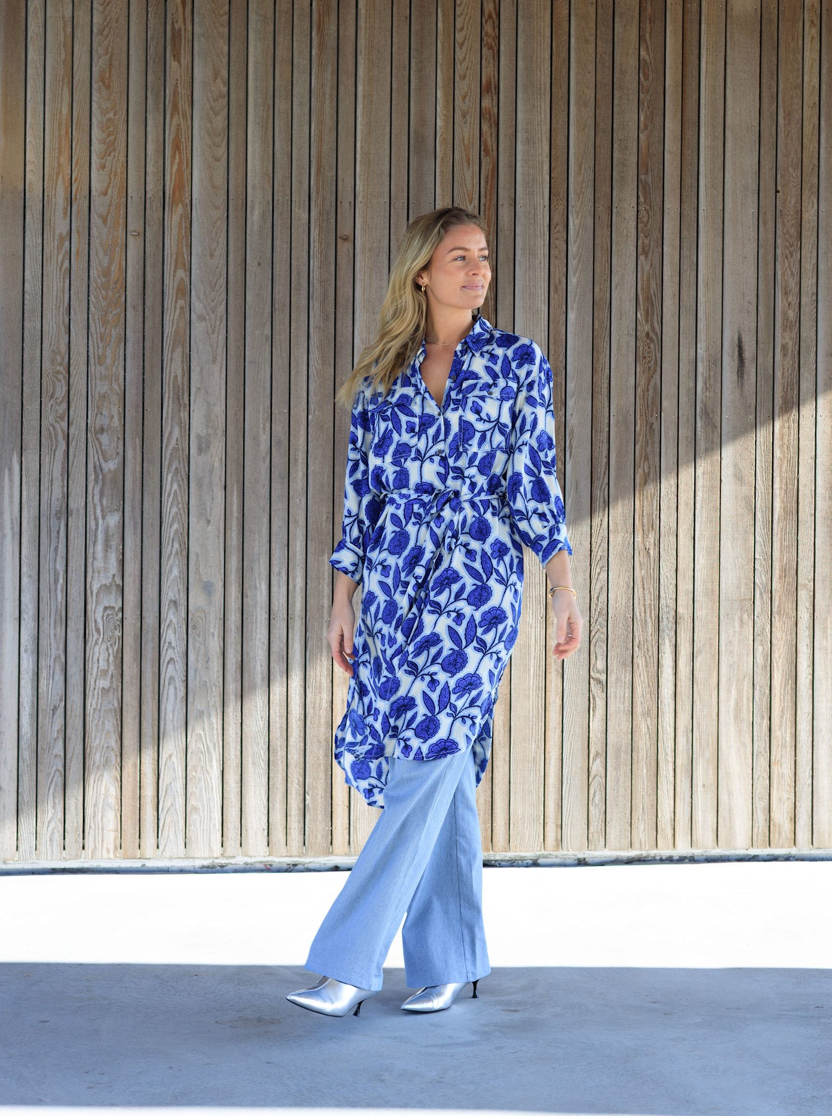 The Luna shirt dress with chest pockets and belt is made in the most beautiful vibrant fabric that falls beautifully on the body. With its classic shirt collar, button closure and adjustable belt at the waist, it gives a feminine and relaxed look. Perfect for both everyday wear and festive occasions.