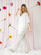 The Roxie t-shirt is a cool oversized t-shirt with detailed lace. The blouse is the perfect choice when you want to quickly and easily create a trendy and eye-catching look. Wear it with the matching Roxie pants, or with a cool pair of jeans or trousers.