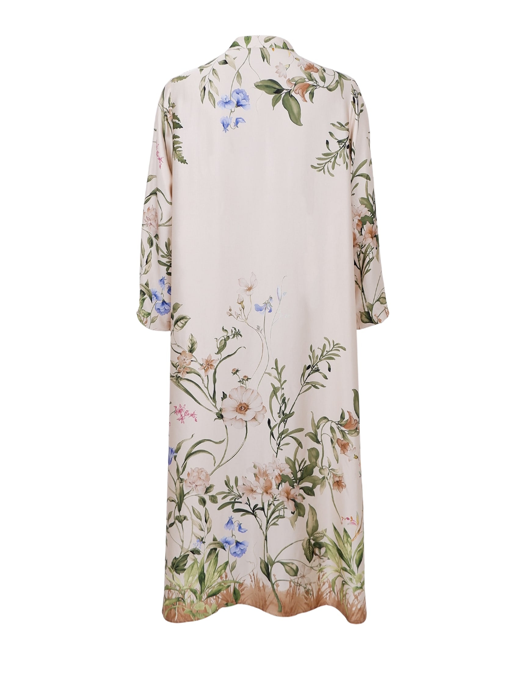 Our Zennia dress is a long dress in shiny viscose with a beautiful floral print in soft colors. The dress has a button closure at the front, elastic at the wrists and an elegant, loose fit. Perfect for both everyday and festive occasions.