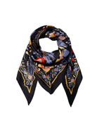 This triangular scarf has an all-over floral print that gives a decorative and harmonious look.