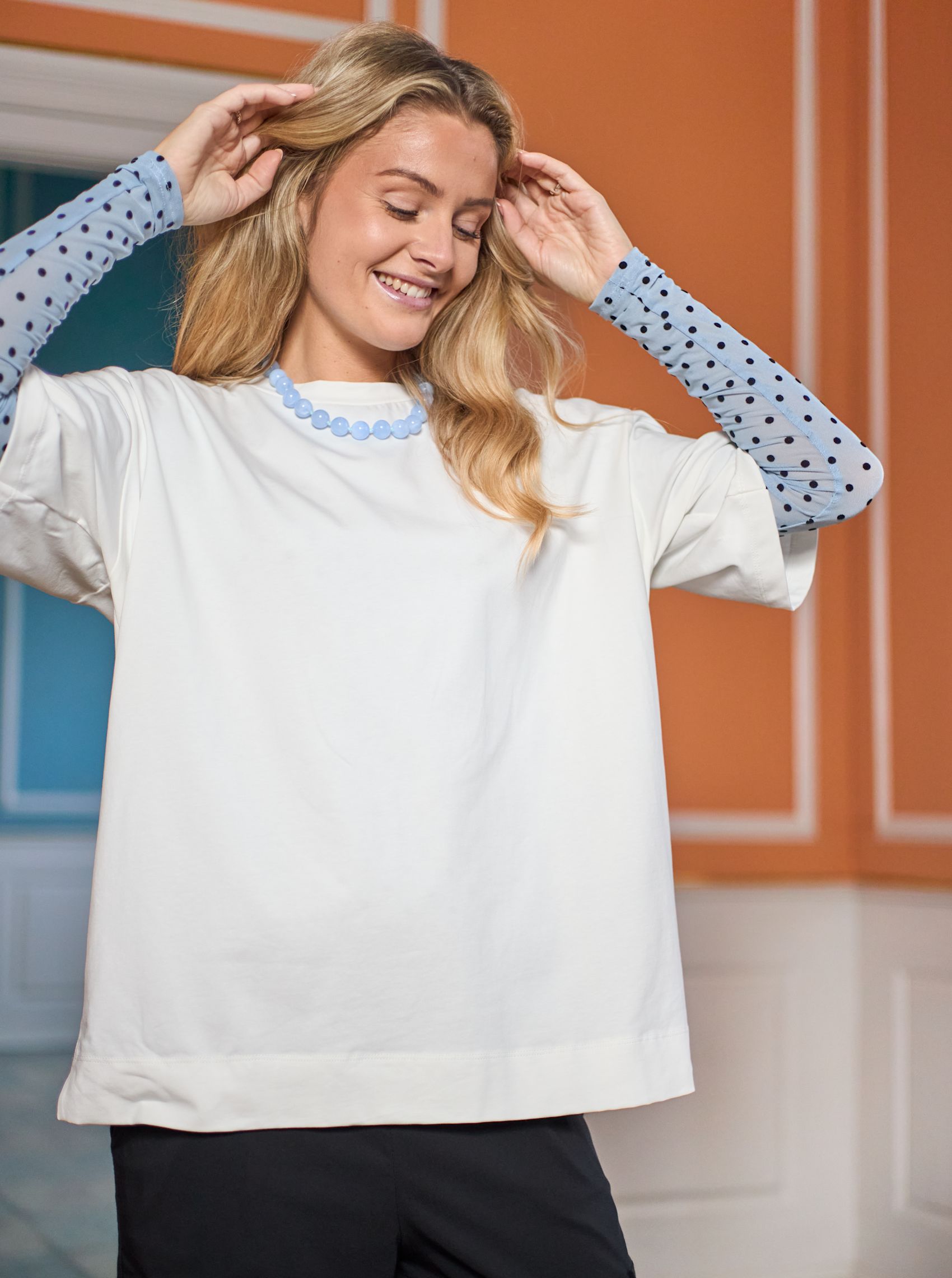 A classic oversized T-shirt with a relaxed and modern cut. The model has a round neck, wide sleeves and a loose fit that gives a cool and effortless look. In addition, it has a small embroidery of our BC logo at the neck. The soft material makes the T-shirt extra comfortable and perfect for everyday wear and relaxation.