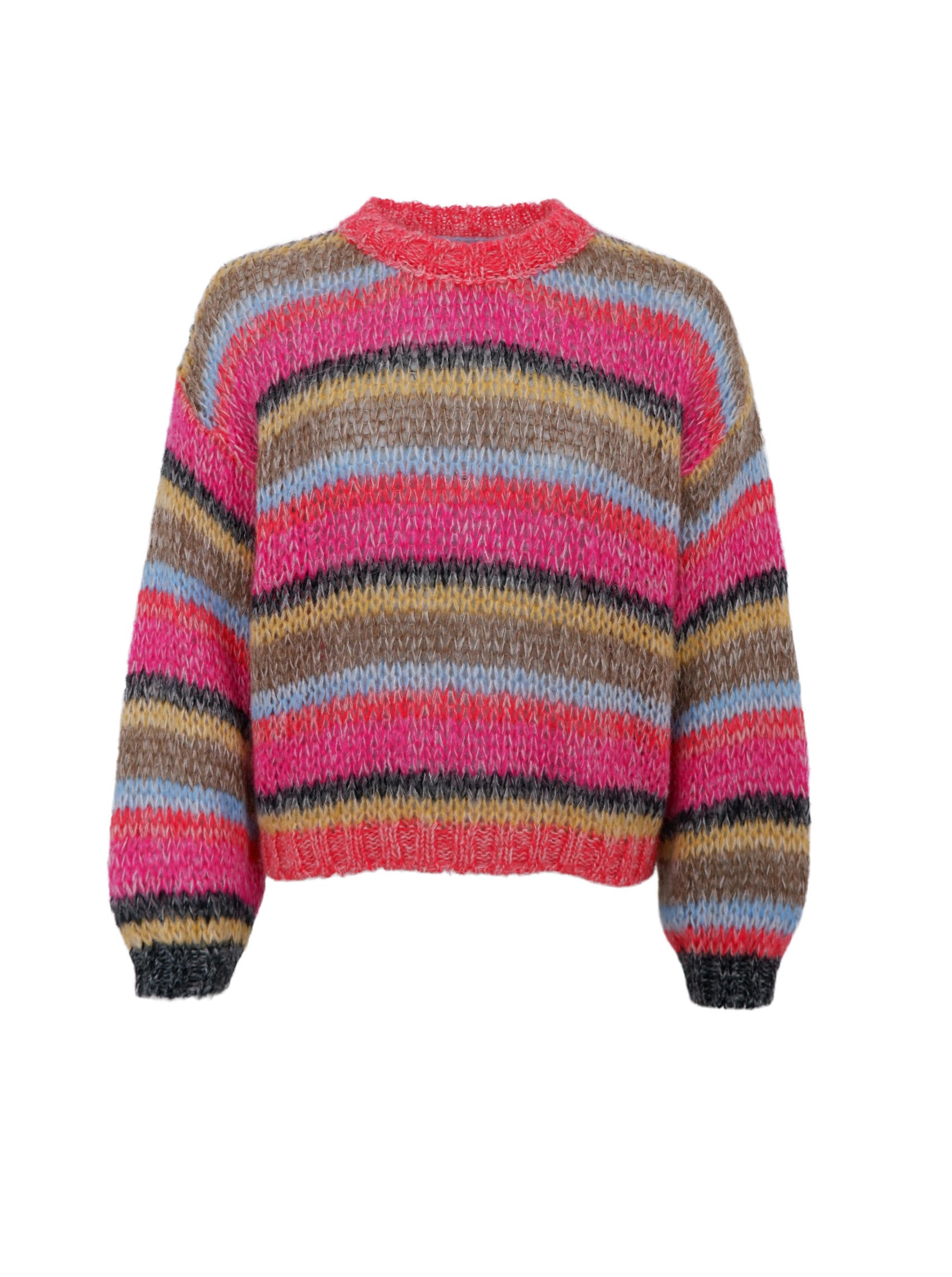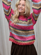 Lovely and soft knit with a colorful and eye-catching look. The sweater has a classic round neck and a comfortable, slightly oversized fit, which makes it great to wear in everyday life. The long sleeves are finished with ribbed edges, which ensures a good fit and gives a relaxed look.