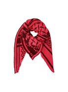 Soft and voluminous triangular knitted scarf with partisan print.