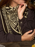 Soft and voluminous triangular knitted scarf with partisan print.