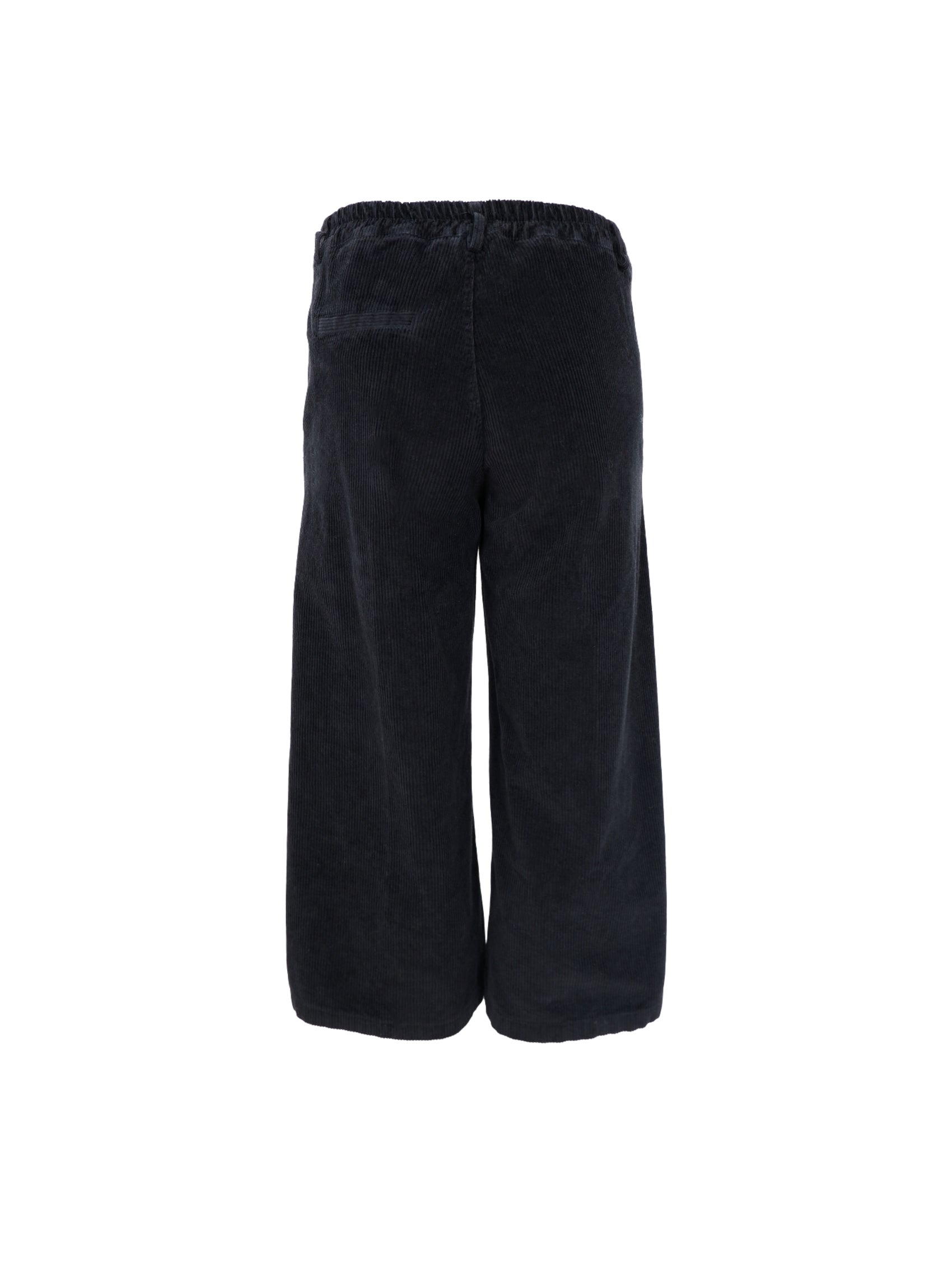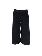 Corduroy trousers in culotte length with a wide fit. The model has an elasticated waist at the back, belt loops, a button and zip fastening at the front and side pockets. The soft corduroy gives a modern and relaxed look