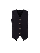 The Davi vest is a feminine and modern vest. It features an elegant V-neck, decorative buttons at the front and a flattering cut that accentuates the waist. The soft, slightly stretchy material provides all-day comfort, while the pointed front design adds a sophisticated touch. Wear it alone or over a shirt for a stylish and warmer look.
