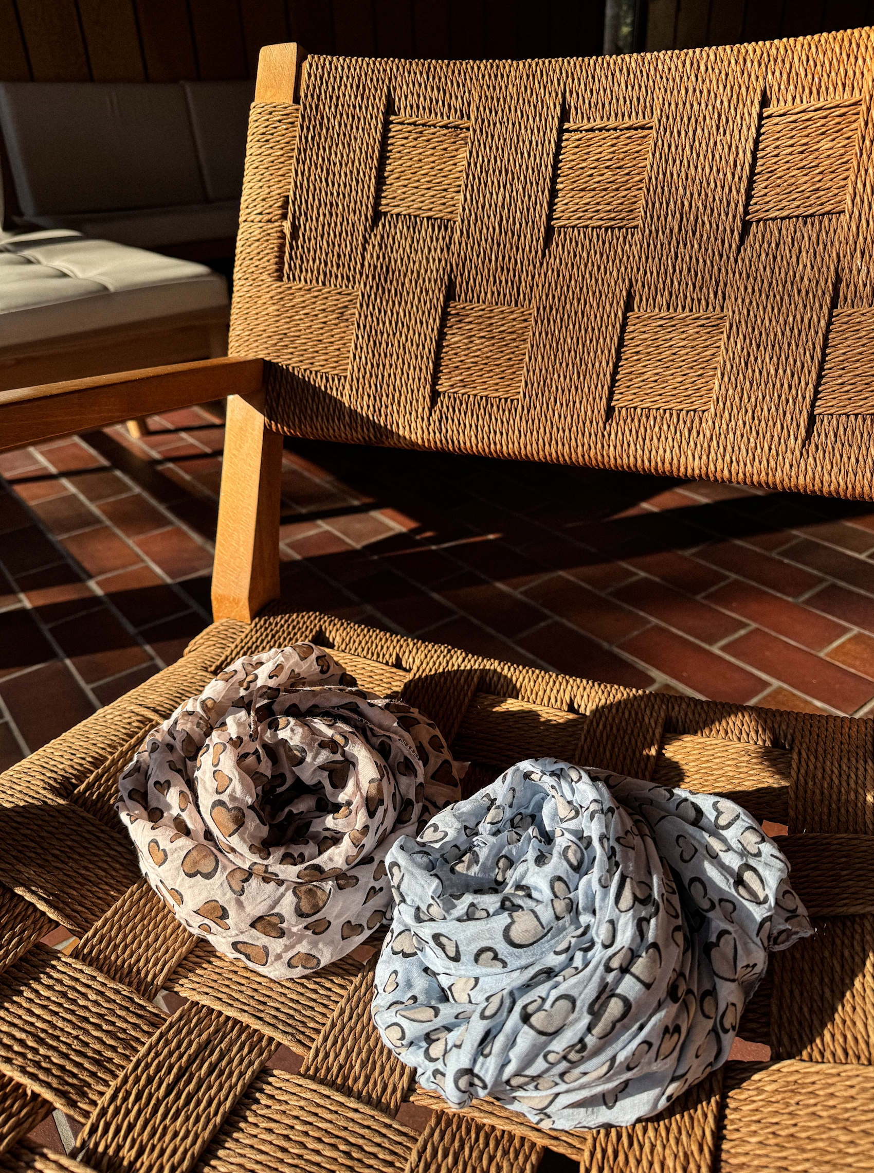 Our Hestia scarf is a soft and elegant scarf in a beautiful blend of cotton and silk. The scarf is designed with a beautiful heart print that adds a feminine and romantic touch. The lightweight material makes the scarf ideal for both everyday use and special occasions. Perfect for spicing up any outfit with a stylish and charming look.