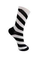 These socks feature wide, contrasting stripes that give a distinctive and modern look. A cool and colorful detail that adds energy and personality to the outfit.