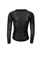 Mesh blouse with flocked dots.