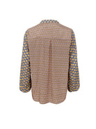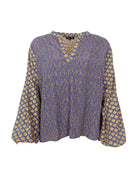 Feminine and unique blouse with v-neck and elastic at sleeves.