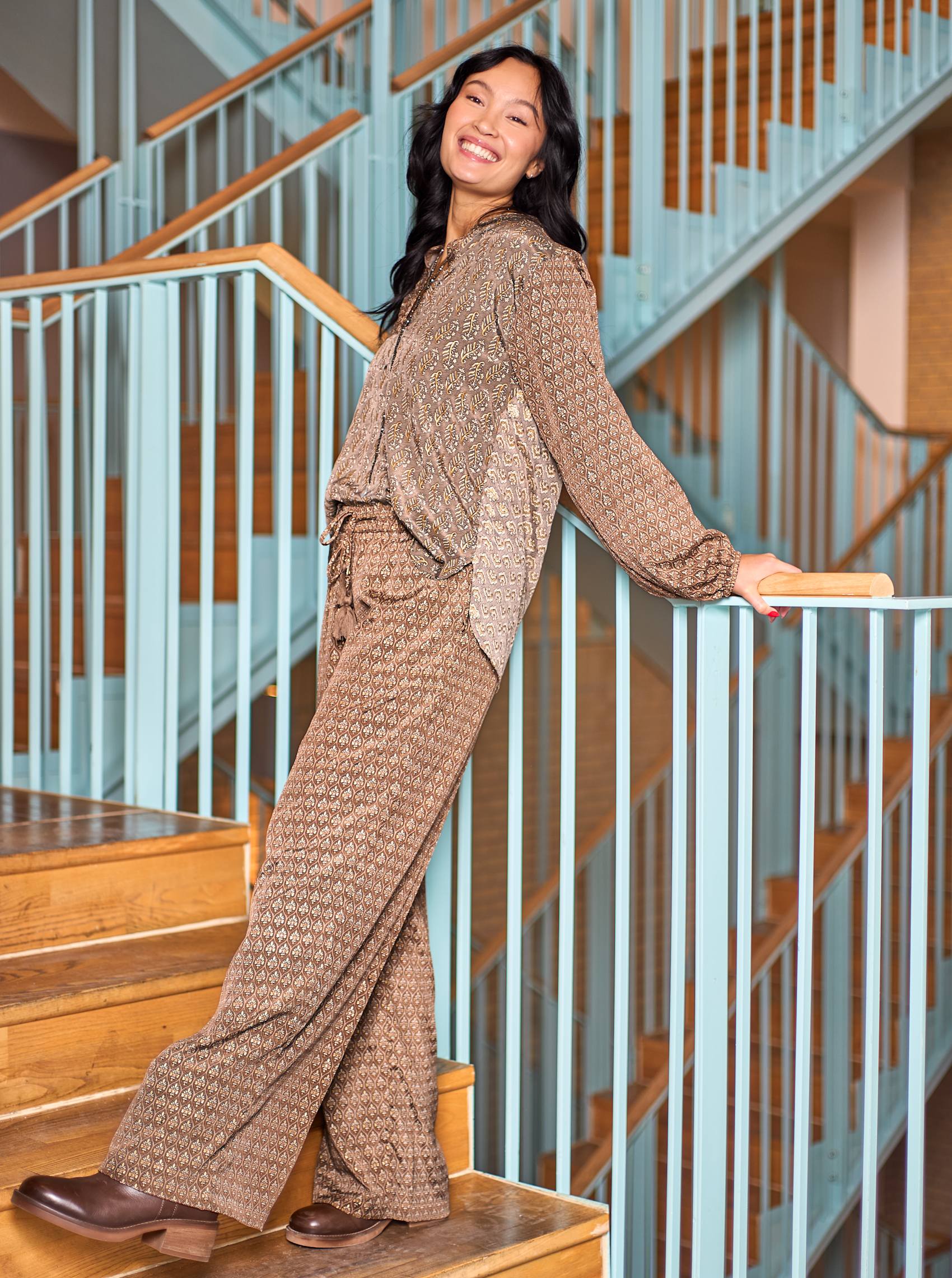 Straight and wide legged pants with tassel string