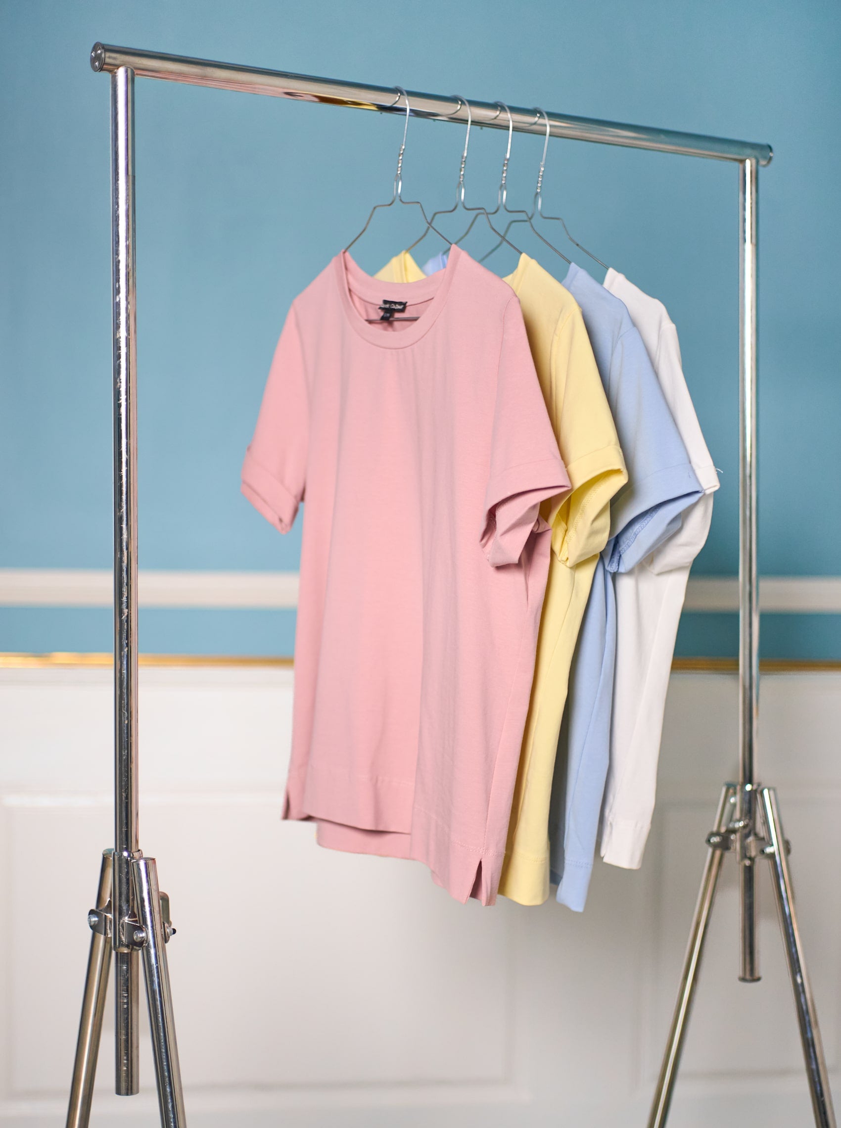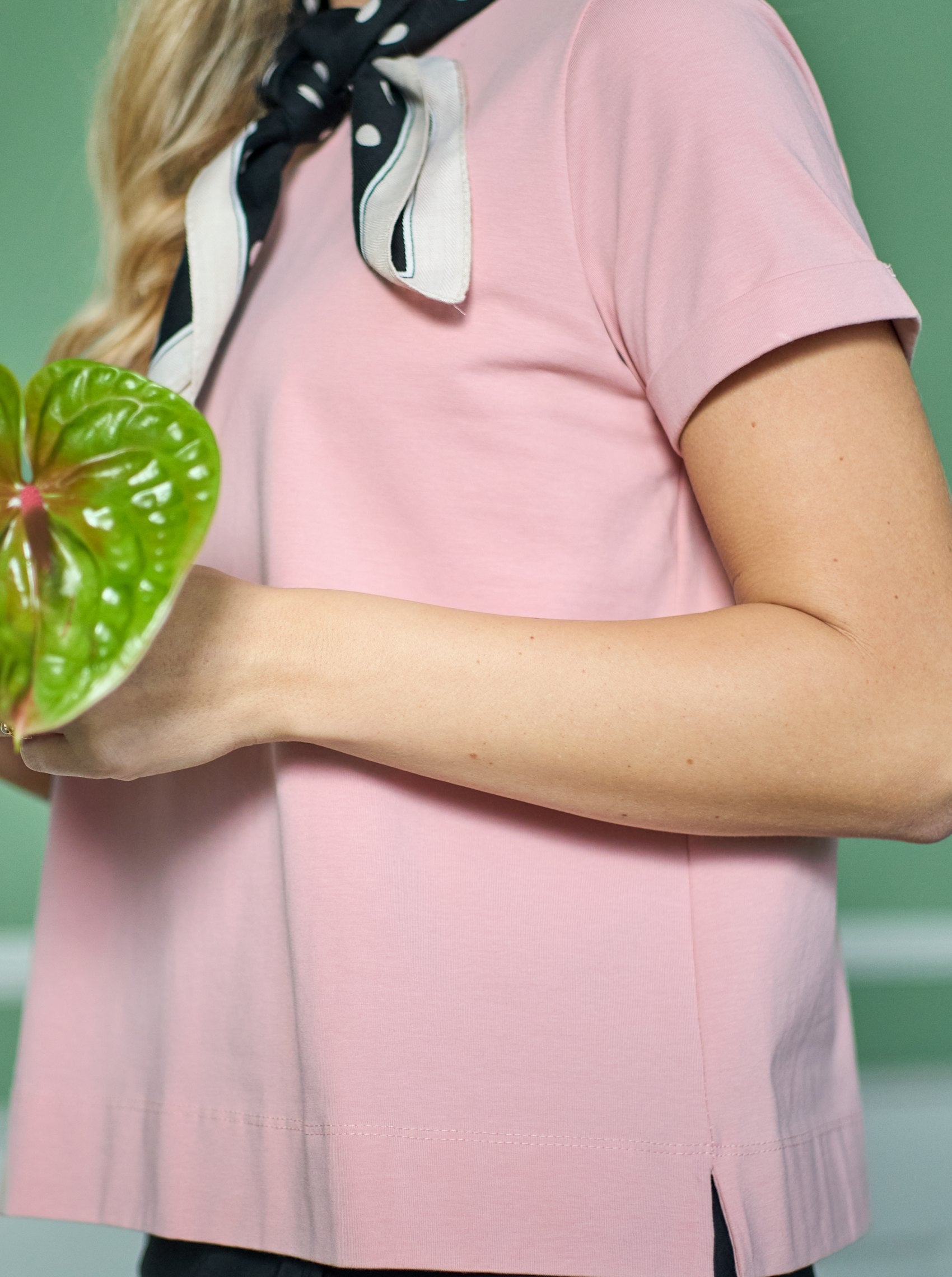 Our short-sleeved May t-shirt is a lovely loose-fitting cotton tee with a round neck and a small pleat on the sleeves. The blouse is solid-colored and completely simple, which makes it incredibly versatile, as it can be combined with almost anything.