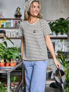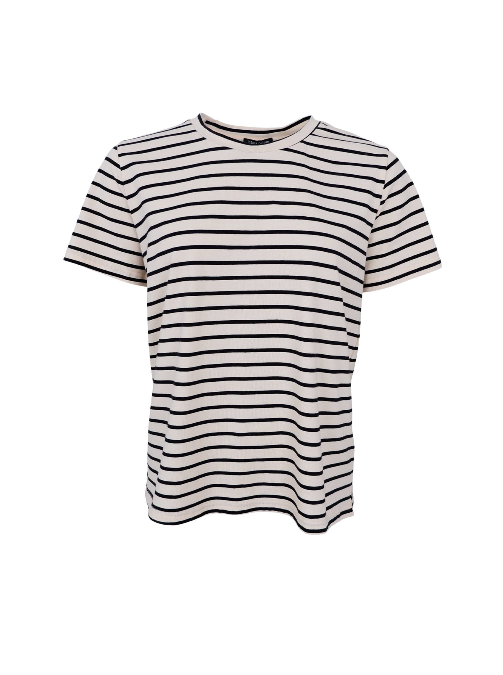 A beautiful and versatile striped T-shirt that brings energy and joy to your wardrobe. It has a classic round neckline and short sleeves, which gives a relaxed and practical look. The fit is light and comfortable with a flattering silhouette that makes it easy to style with jeans, skirts and shorts.