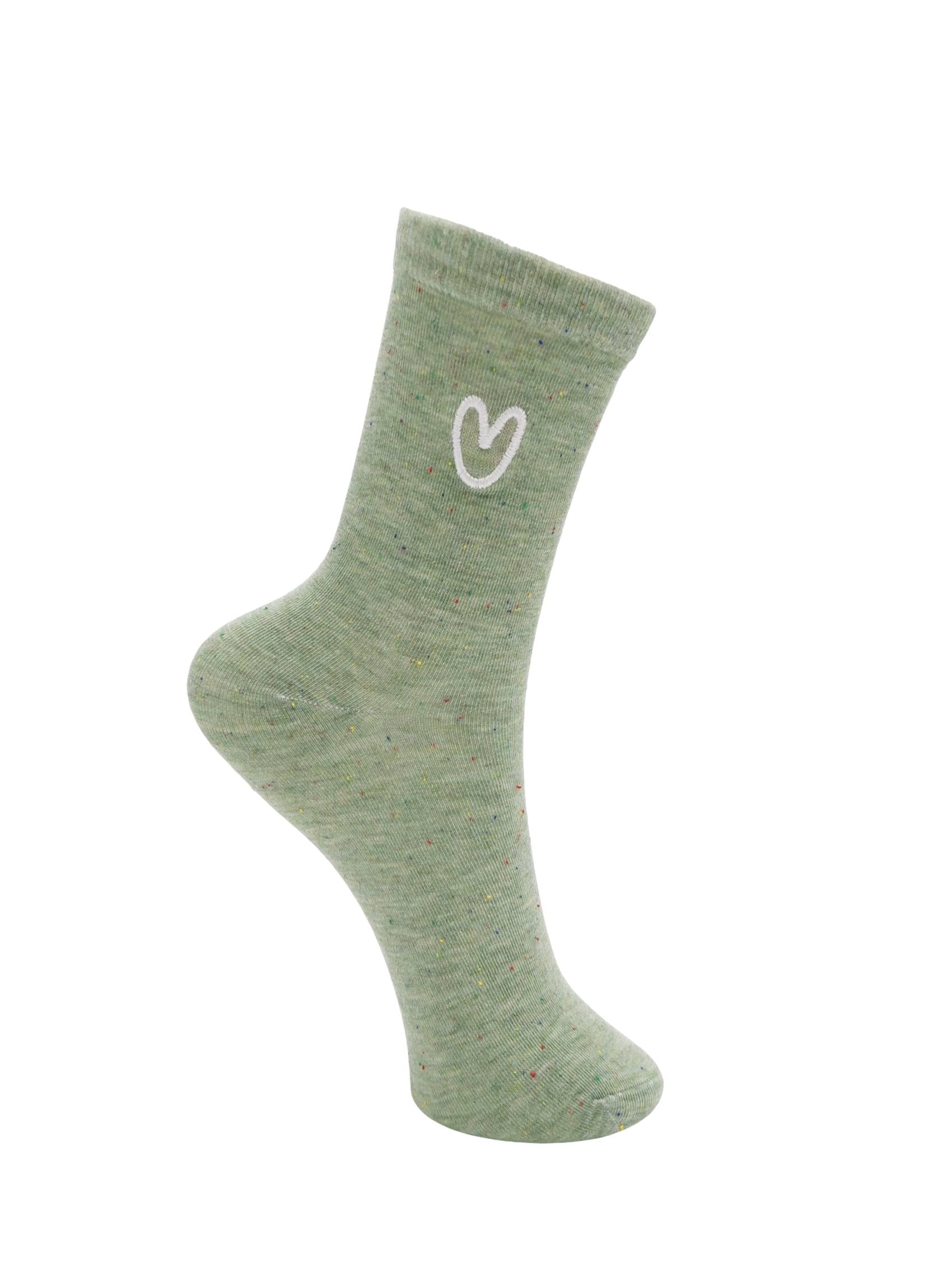 Beautiful and soft sock with a sweet embroidered heart at the ankle. The melange knit and simple detail give a relaxed but charming look - perfect for everyday outfits. Available in several beautiful colors, so you can add a touch of love to any wardrobe.